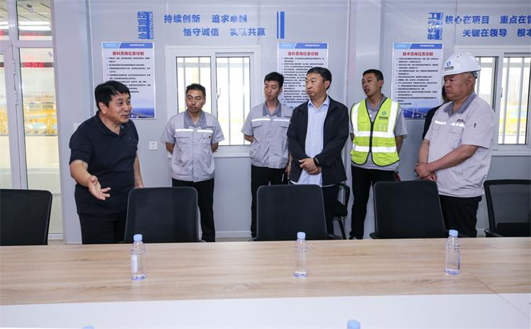 在市果品會(huì)展交易中心項(xiàng)目現(xiàn)場(chǎng),牛正澤認(rèn)真聽(tīng)取項(xiàng)目負(fù)責(zé)人匯報(bào),詳細(xì)詢(xún)問(wèn)施工進(jìn)度、機(jī)械設(shè)備入場(chǎng)等情況。目前,項(xiàng)目基礎(chǔ)土方開(kāi)挖、試樁施工和檢測(cè)、副東館工程樁已完成,正在進(jìn)行主館的工程樁施工。他對(duì)項(xiàng)目人員良好的精神面貌、布置得當(dāng)?shù)霓k公區(qū)域、簡(jiǎn)約大方的辦公桌椅及項(xiàng)目“四個(gè)一流”“四個(gè)在”口號(hào)、崗位責(zé)任標(biāo)牌設(shè)置等予以高度肯定。他要求項(xiàng)目部,一是要把EPC模式弄懂吃透,會(huì)同安裝、裝修裝飾等作業(yè)單位,優(yōu)化圖紙、施工方案等細(xì)節(jié),加快項(xiàng)目進(jìn)度;二是把住原材料采購(gòu)價(jià)格關(guān),協(xié)調(diào)建設(shè)方、供貨方,維護(hù)好應(yīng)有權(quán)益;三是要以剛剛成立的BIM中心為載體,活學(xué)活用,真正發(fā)揮BIM提供施工數(shù)據(jù)支撐、降低項(xiàng)目成本的作用;四是要和項(xiàng)目管理人員、一線(xiàn)施工人員多多交流,加強(qiáng)人文關(guān)懷,不斷改善項(xiàng)目辦公、生活環(huán)境,提升人員工作熱情;五是要推動(dòng)項(xiàng)目黨建往實(shí)走、往深走,通過(guò)黨委開(kāi)展的黨史學(xué)習(xí)教育活動(dòng),增強(qiáng)凝聚力、向心力,保障項(xiàng)目建設(shè)按期高質(zhì)量推進(jìn),向建黨百年獻(xiàn)禮。