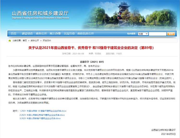 運城建工集團被認定為“山西省優(yōu)秀骨干建筑業(yè)企業(yè)”